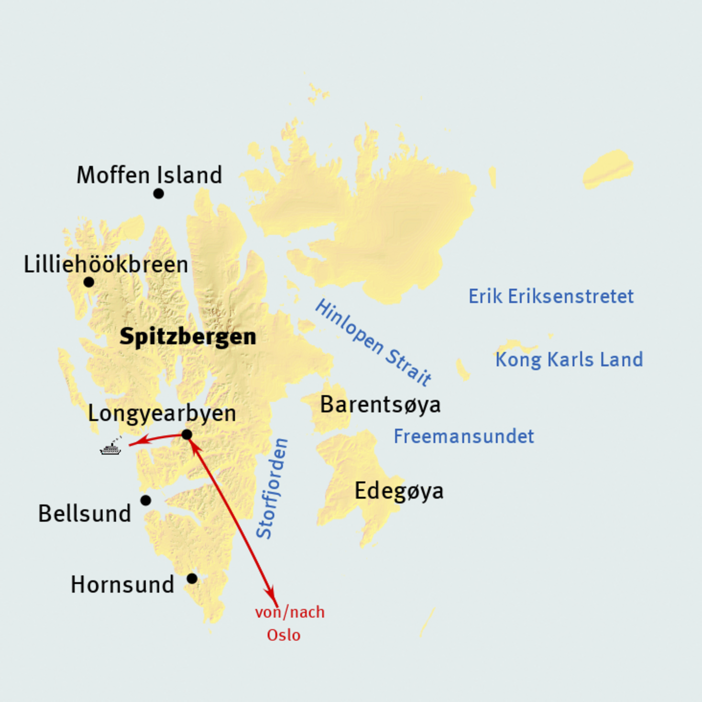 - Charterflüge hin und zurück zwischen Oslo und Longyearbyen